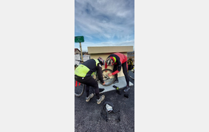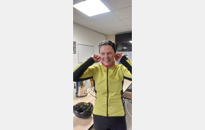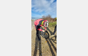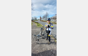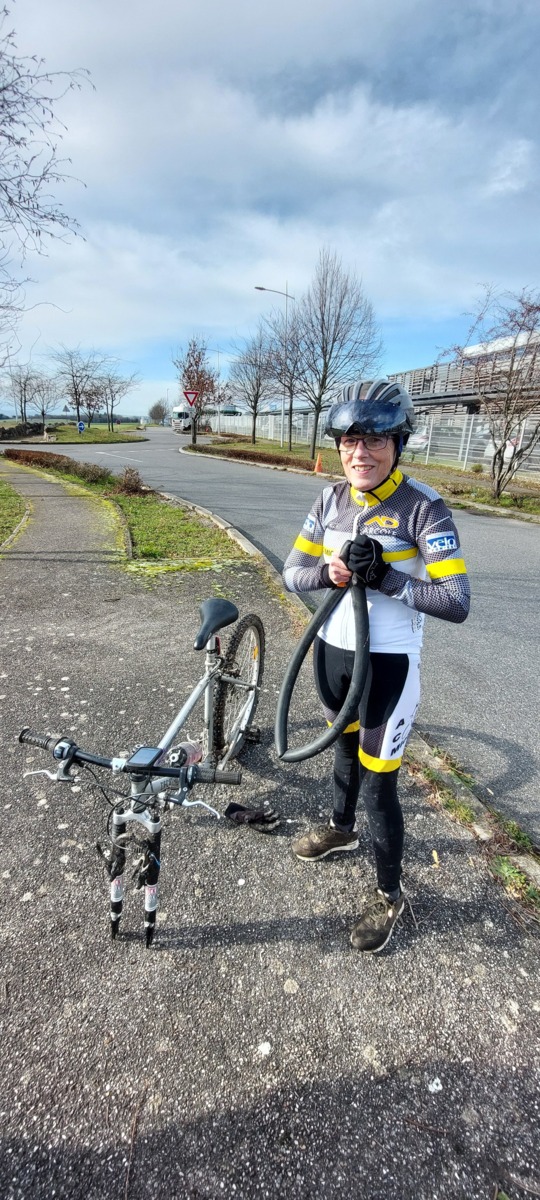 Côté vttistes Pierrette étrennait son nouveau bolide ! Après avoir tenté de moissonner un champ de jeunes pousses de blé avec son engin, elle a regagné la piste tracée beaucoup plus confortable.