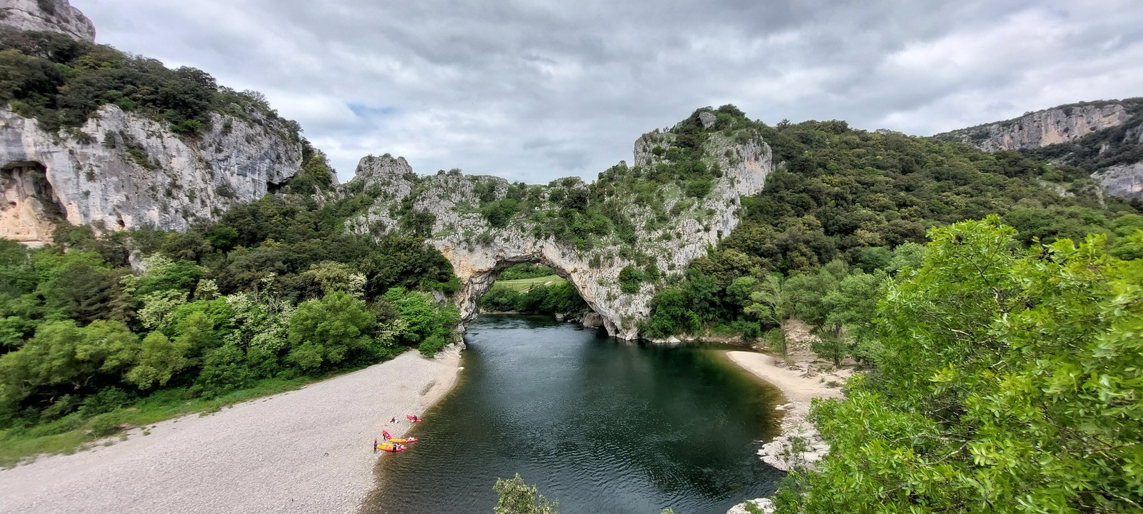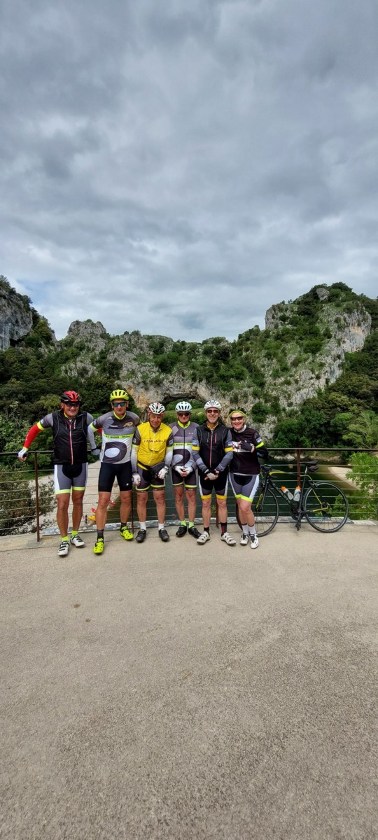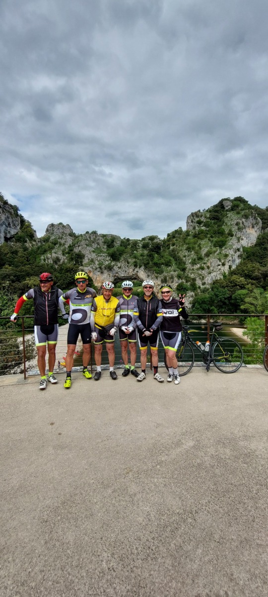 Pour notre première sortie, une boucle de 70km, nous nous sommes engouffrés dans les Gorges de l'Ardéche taillées dans le calcaire nous offrant un Pont d'Arc majestueux en arrière plan de nos souvenirs.