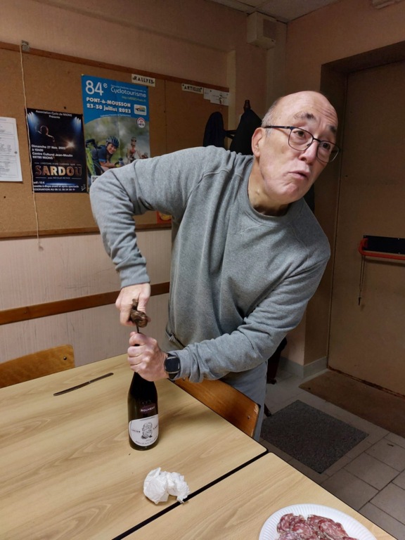 On peut dire qu'elle avait du cran celle-ci ! Le corps à peine couvert d'une étiquette et les épaules nues ! Quand elle a commencé à pousser du col et que sa robe rouge s'est répandue en frous frous aux reflets rubis dans l' Arcopal des ballons, tout s'est mis à tinter ! Les rondelles ont saucissonné, la campagne s'est découpée en cubes dans le pâté. Alors que l'on admirait son joli nez fruité Daniel s'est mis à "rivater"