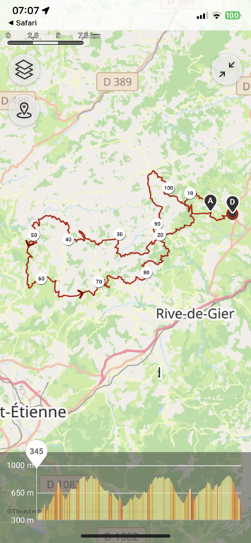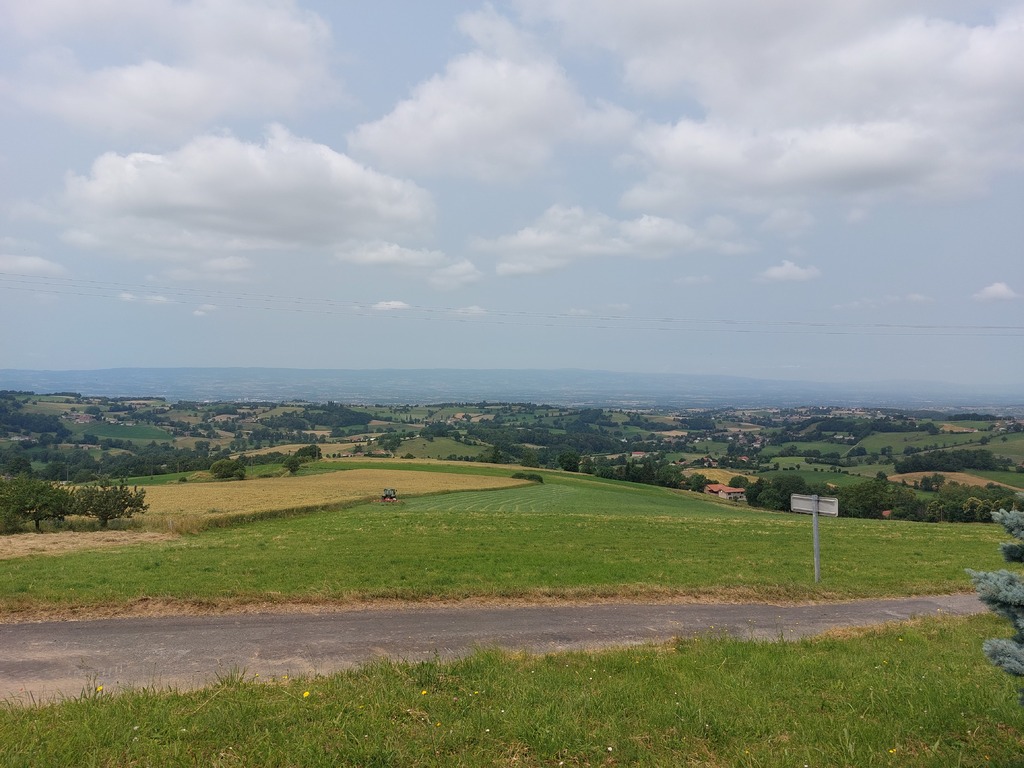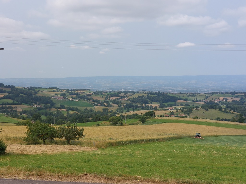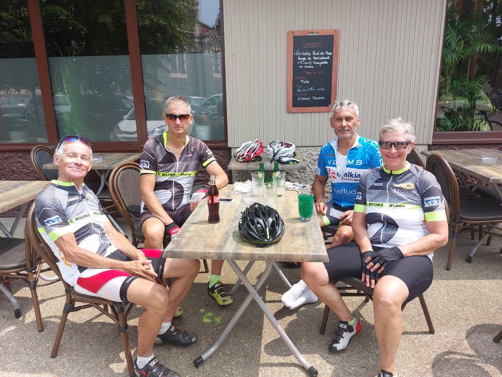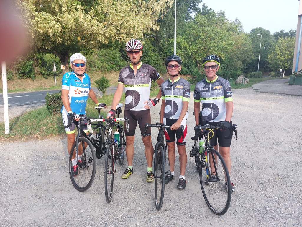 De Saints en Saintes un couturier a brodé une fine dentelle sur les plaines et les reliefs du pays mornantais. Son fil caressait les flancs du Pilat et virevoltait en épingles à cheveux le long des cultures et des vergers. Il soulignait de ses points serrés les courbes des coteaux ensoleillés. La Coise, le Gimond et le Couzon infimes cours d'eau s'entrelacaient et tricotaient dans leur lit de petites histoires sonores. Des petits boutons de nacre bêlaient sur leur tapis vert. L'asphalte noir en surpiqûre contrastait avec les blés mûrs et le chaume frais. Au 110 éme kilomètre l'ouvrage était achevé. Après l'avoir hissé sur presque 2400 mètres nous avons ressenti à l'arrivée l'immense fierté d'avoir appris la broderie sur des pédales ! Une immense gratitude à Jean-Luc qui nous a dessiné un chef d'œuvre sportif. Un grand merci aux compagnons Jean-Michel qui s'est occupé de la sono de bout en bout et à Tonino qui a su renoncer à l'irrespressible envie d'engloutir une côte de bœuf en milieu de parcours. Remerciements à la bonne humeur qui s'est invitée parmi nous.