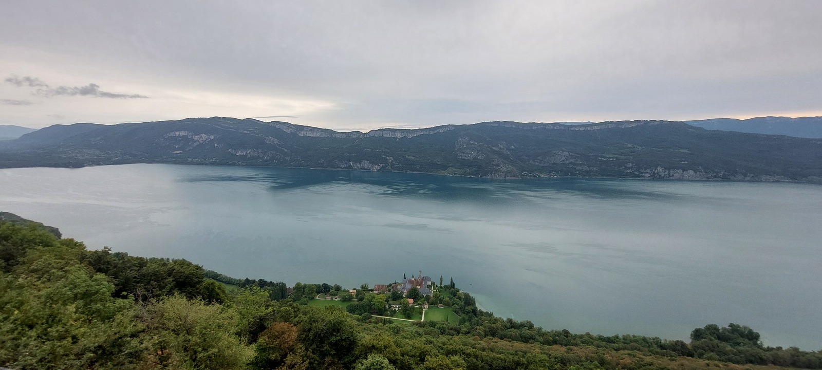 Face à nous surplombant la rive Est un mammouth de calcaire né d’un carambolage entre roches aux forces titanesques : Le Revard.