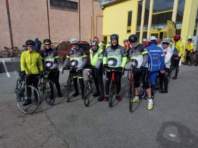 Pour les premières pedalées nous nous sommes ralliés à la grande cause. Nous nous sommes pelotonnés. Nous avons mélangé nos couleurs et pris du panache. Nous avions l'esprit dans le collectif. Il se dégageait un sentiment joyeux à se retrouver unis et solidaires pour le grand combat contre "la croissance anarchique et incontrôlable des cellules" Car en fait tout le monde y pense secrètement.
