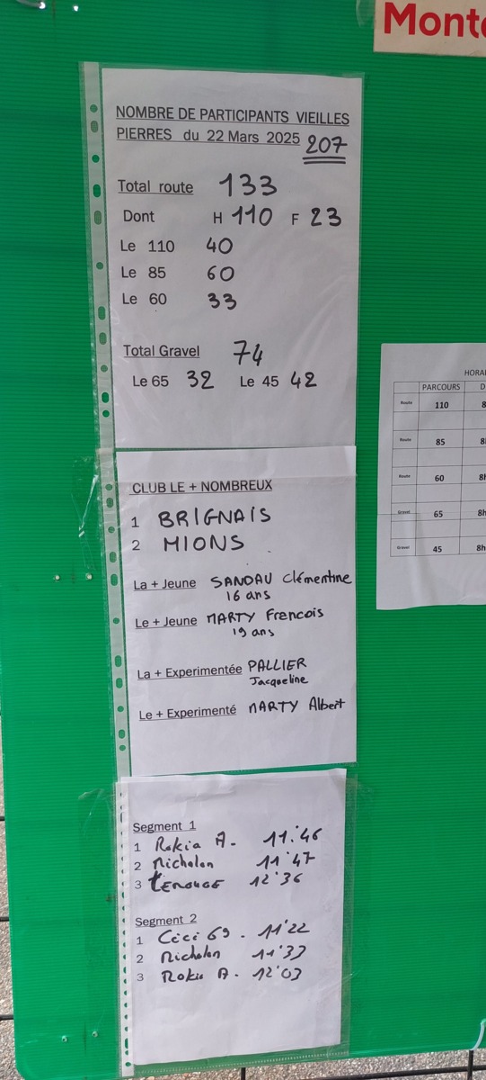 Décompte : 133 cyclos : 110 hommes - 23 femmes - AC MIONS le club le plus representé après BRIGNAIS